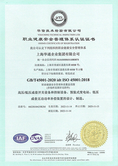 ISO 45001:2018 職業(yè)健康安全管理體系認證證書