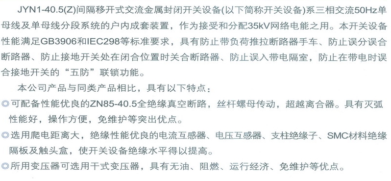 JYN1-40.5間隔移開式交流金屬封閉開關(guān)設(shè)備