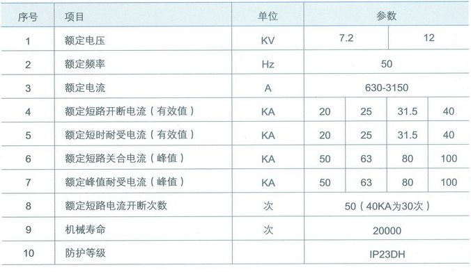 主要技術參數(shù)